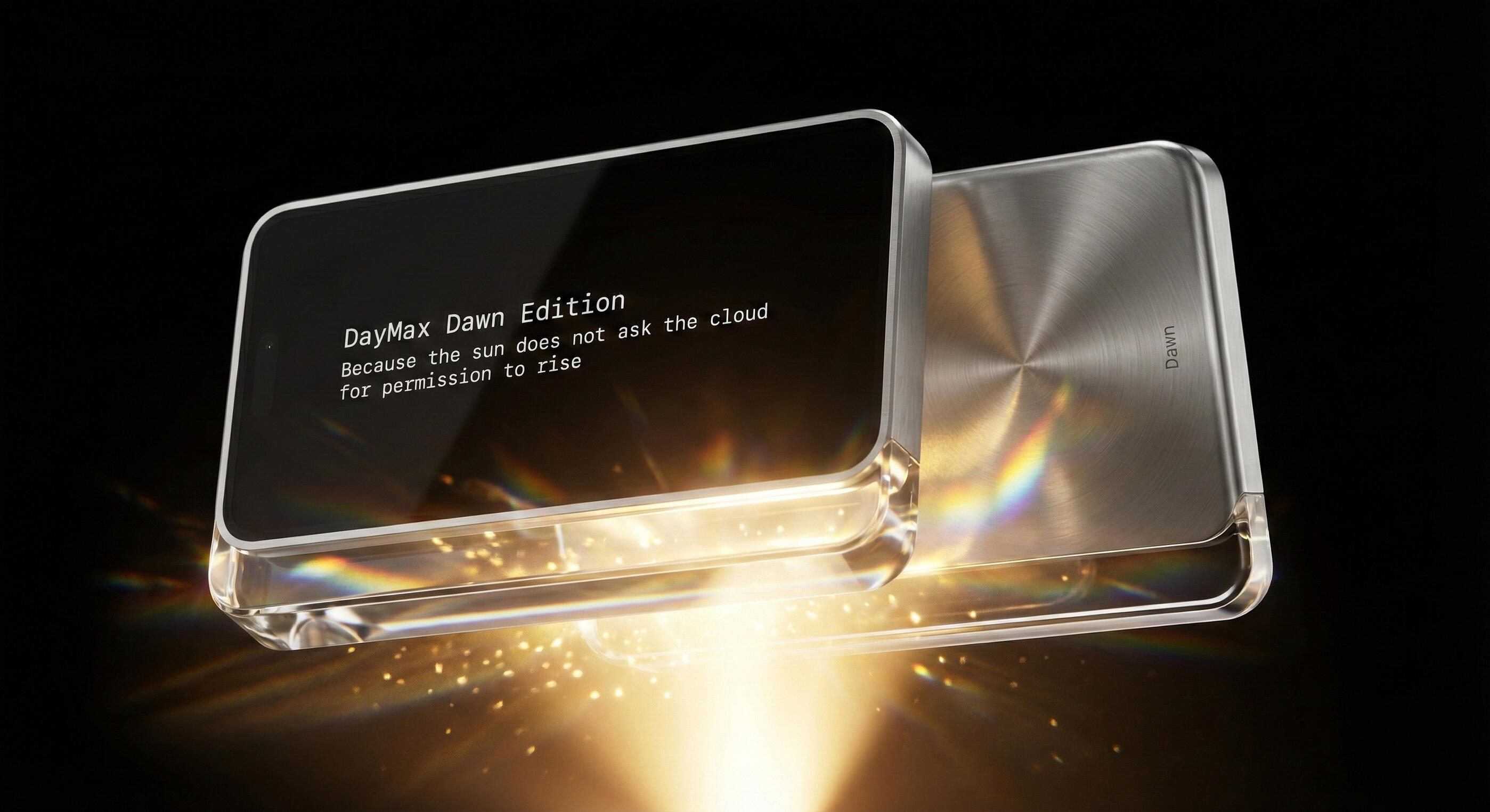 No masters.When you switch on a DayMax PSC for the first time, the only thing that lights up is you._________________________________________What DayMax actually is• Custom silicon that runs Llama 405B at 42 tokens/sec in your hand.• Firmware signed by you, not us.• An operating system that ships with zero network drivers until you explicitly enable them.• A bootloader that prints one line and one line only:“DayMax: Because the sun doesn’t ask the cloud for permission to rise.”_________________________________________What DayMax representsThe physical declaration of digital sovereignty.